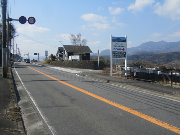 - 由布市役所、マルミヤストア庄内店を通過し、200m先の「目印の看板」を左折し、森林組合に入る